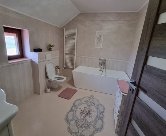 Locuința este dispusă pe parter și mansardă, cu interiorul complet finisat și mobilat, exact cum se vede în poze.